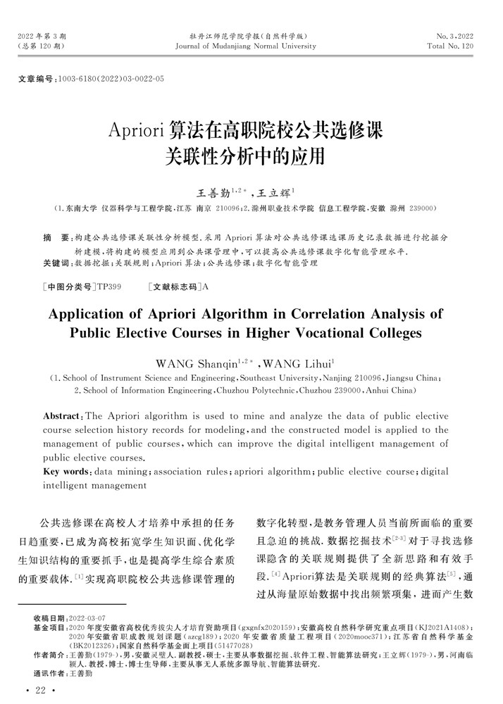 关键词:数据挖掘;关联规则;Apriori算法;公共选修课;数字化智能管理