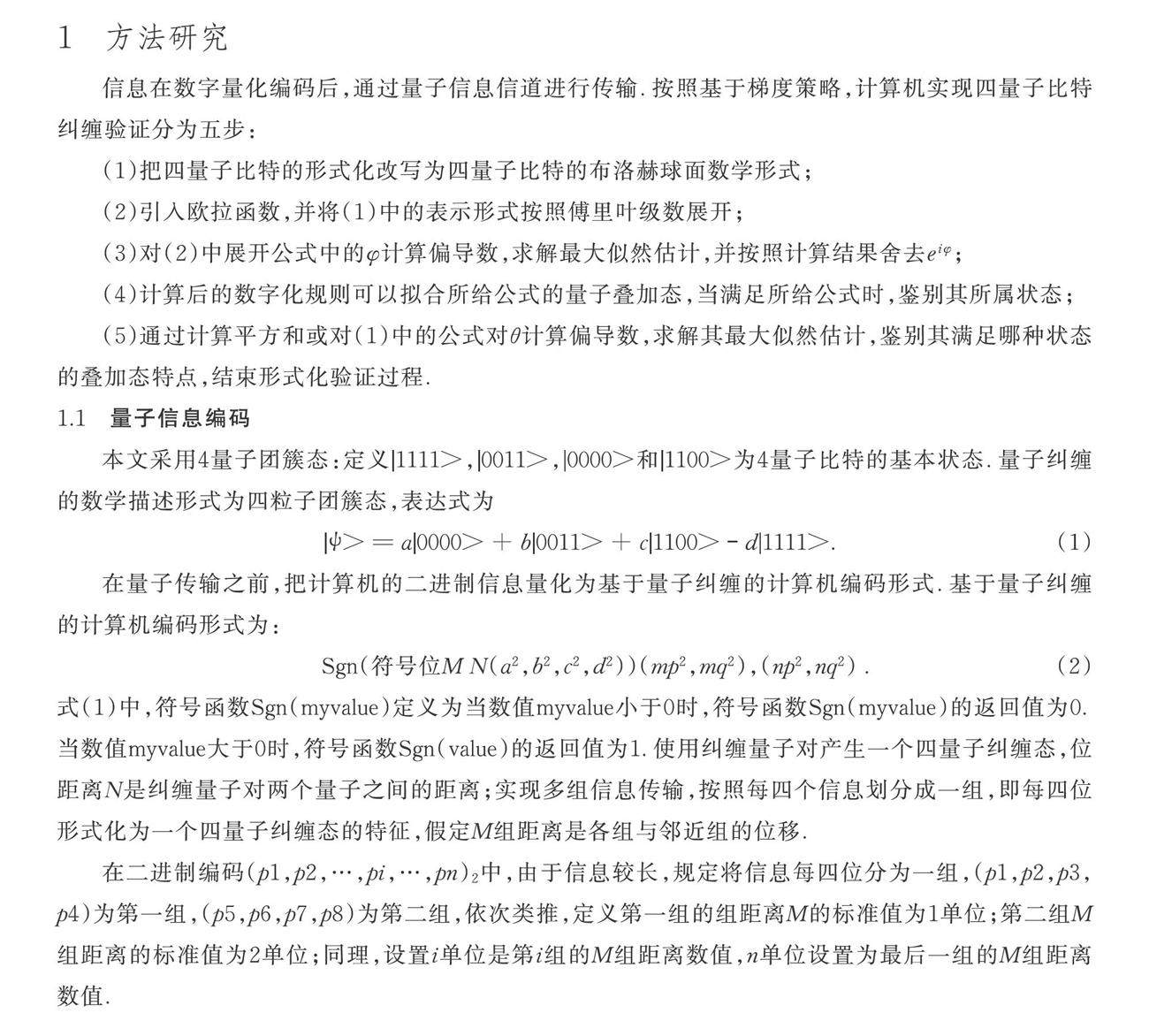 摘 要:提出一种基于梯度傅里叶级数的四量子比特纠缠计算机验证方法.通过数字量化的量子编码,拟合梯度划分策略,在傅里叶级数求解编码中θ和φ的最大似然估计,解决了四量子比特纠缠在计算机条件下的状态鉴别过程;依据梯度策略实现量子解除纠缠、弱纠缠、弱强纠缠、强纠缠不同状态的划分条件.分析结果证明(剩余9874字)