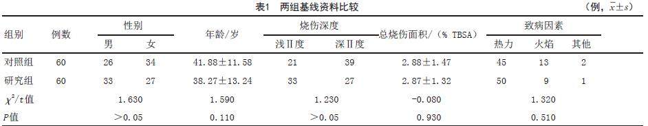 [摘要]目的:探讨中药外用剂通过浸浴熏洗在四肢Ⅱ度烧伤创面治疗中的应用效果。方法:选取2019年1月-2020年12月医院就诊的四肢Ⅱ度烧伤患者120例为研究对象,按照随机数表分为对照组和研究组,每组60例。对照组用生理盐水擦拭冲洗创面,碘伏常规消毒,涂抹磺胺嘧啶银软膏及无菌敷料包扎治疗;研究组先行冬菊洗液浸泡、冲洗和擦拭创面,浸浴水温35℃~37℃,浸浴10 min,再将虎黄洗剂置于中药熏蒸仪中熏洗创面,设定温度95℃,时间10 min,浸浴熏洗结束后,碘伏消毒,涂抹磺胺嘧啶银软膏及无菌敷料包扎治疗。(剩余11675字)