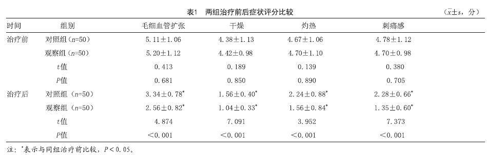 重组牛碱性成纤维细胞生长因子联合点阵CO2激光对玫瑰痤疮皮损改善及皮肤屏障功能的影响