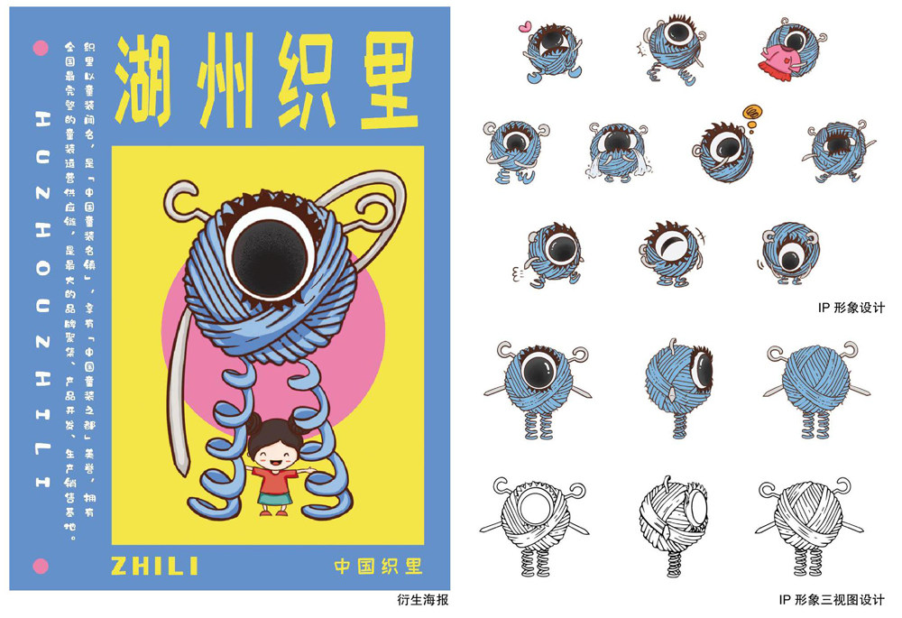 织织球,灵感来源于织里蓬勃发展的羊毛绒产业,以羊毛线团为设计原型,突出童装品牌的人文关怀,毛衣针棒化为吉祥物耳朵与双手,整个形象拟人化,呈现可爱孩子气。(剩余30字)