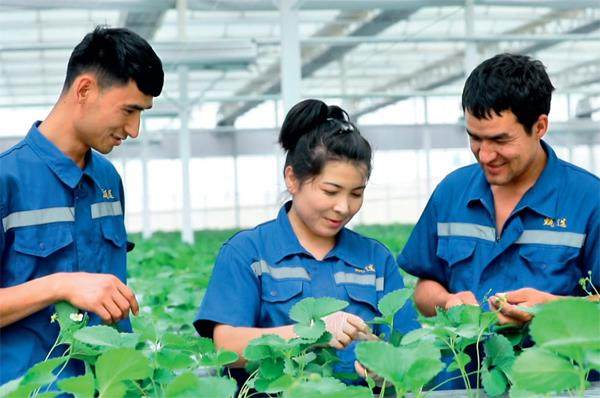 智慧农业植物工厂内,当地农业工人在研究探讨种植技术。