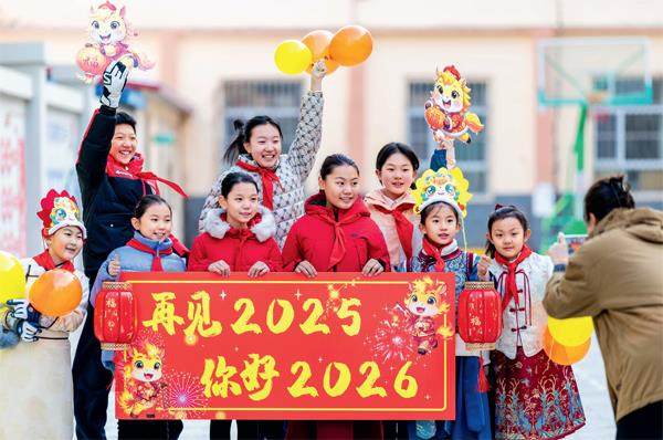 2025年12月30日,内蒙古呼和浩特市玉泉区恒昌店巷小学学生喜迎新年。(丁根厚/人民图片)