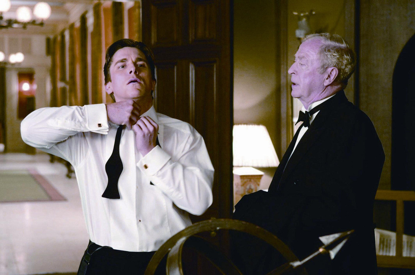 电影《蝙蝠侠:侠影之谜》剧照,蝙蝠侠布鲁斯韦恩家的“地表最强管家”阿福(右)