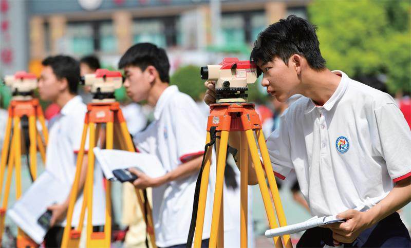2024年5月17日,四川南充,蓬安县职业中学的学生在学习工程测量测绘技术