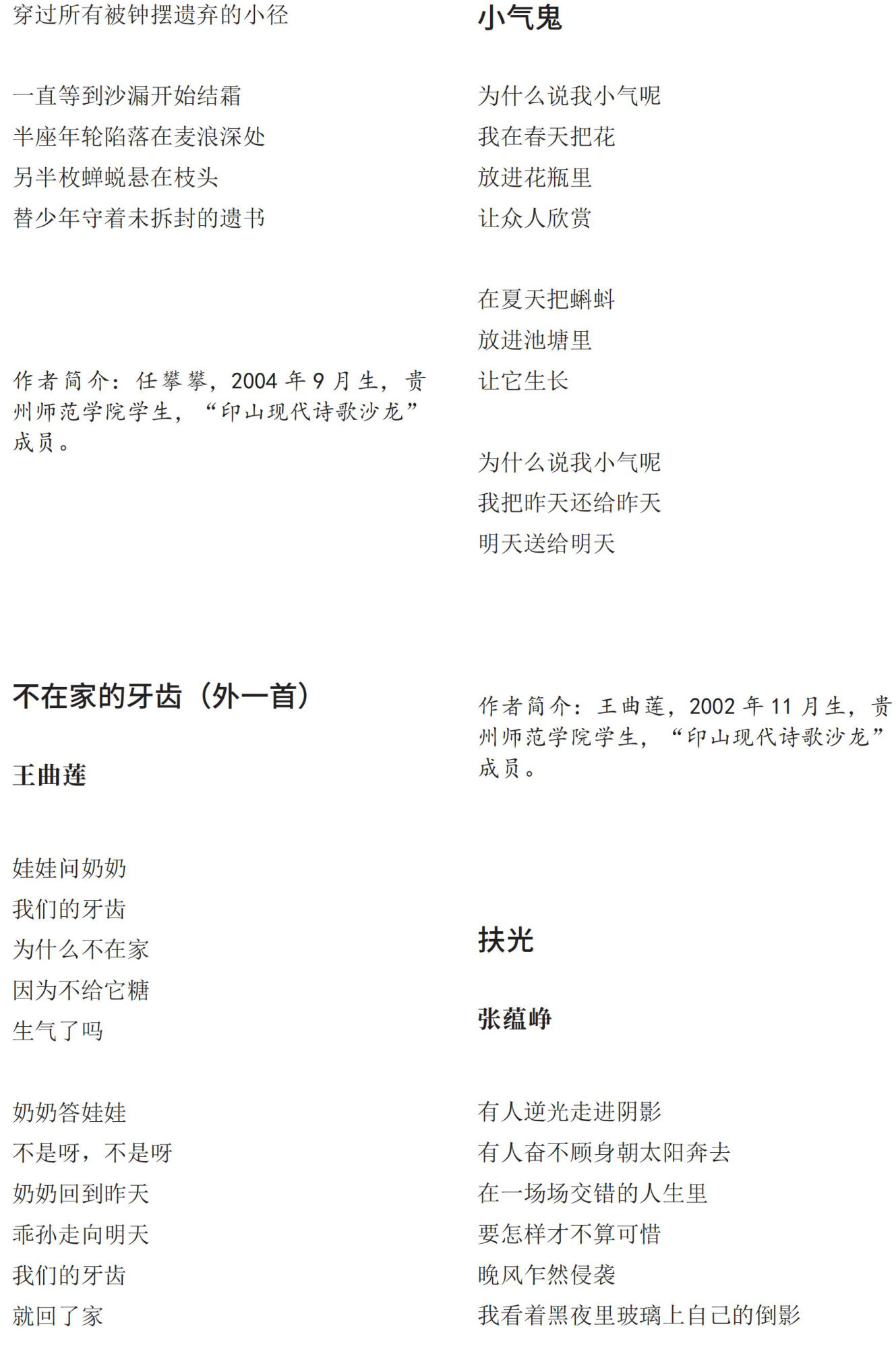 作者简介:刘涵,2003年1月生,贵州师范学院学生,“印山现代诗歌沙龙”成员。(剩余2049字)