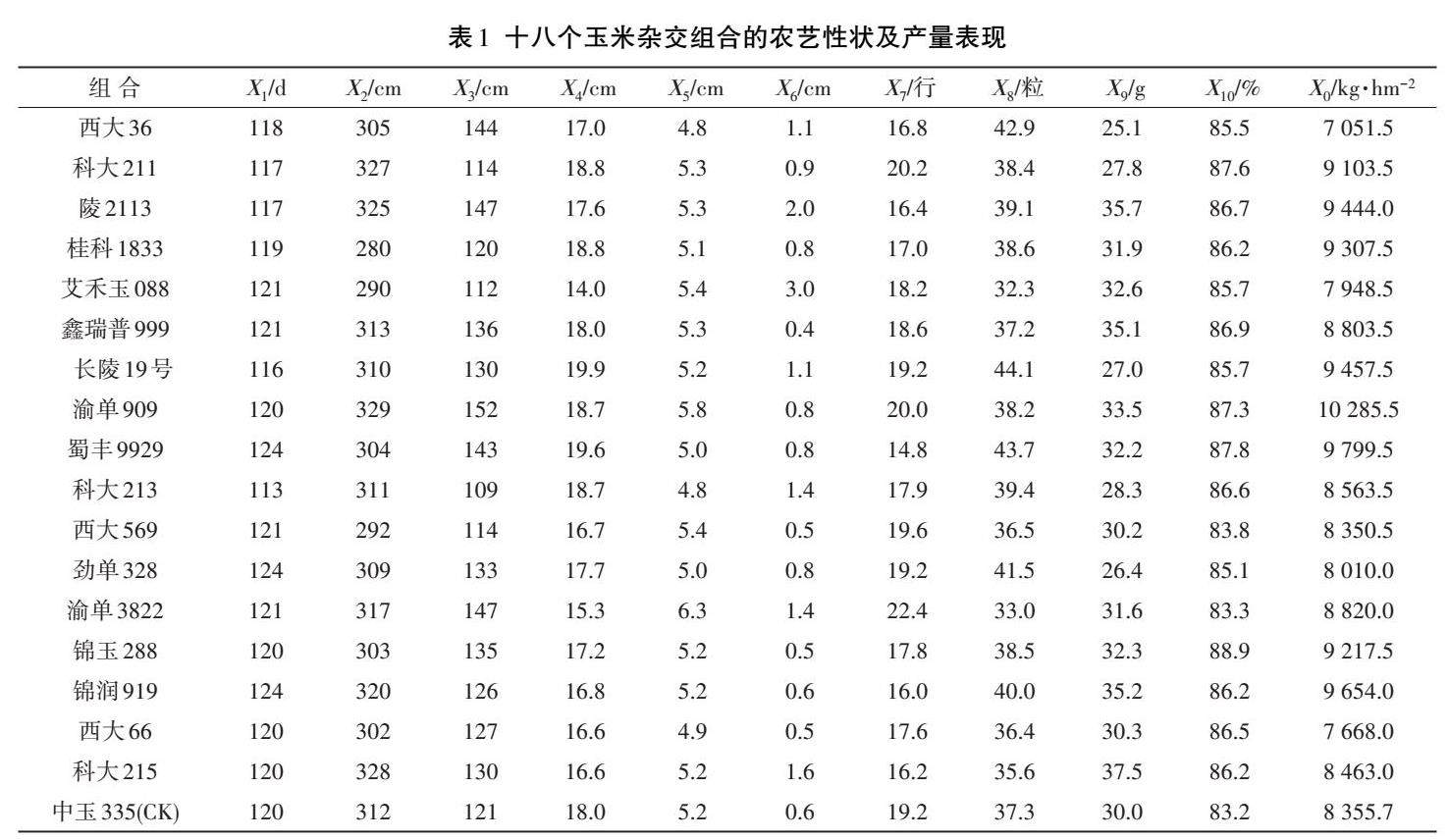 十八个玉米杂交组合产量及其构成因素的灰色关联度分析
