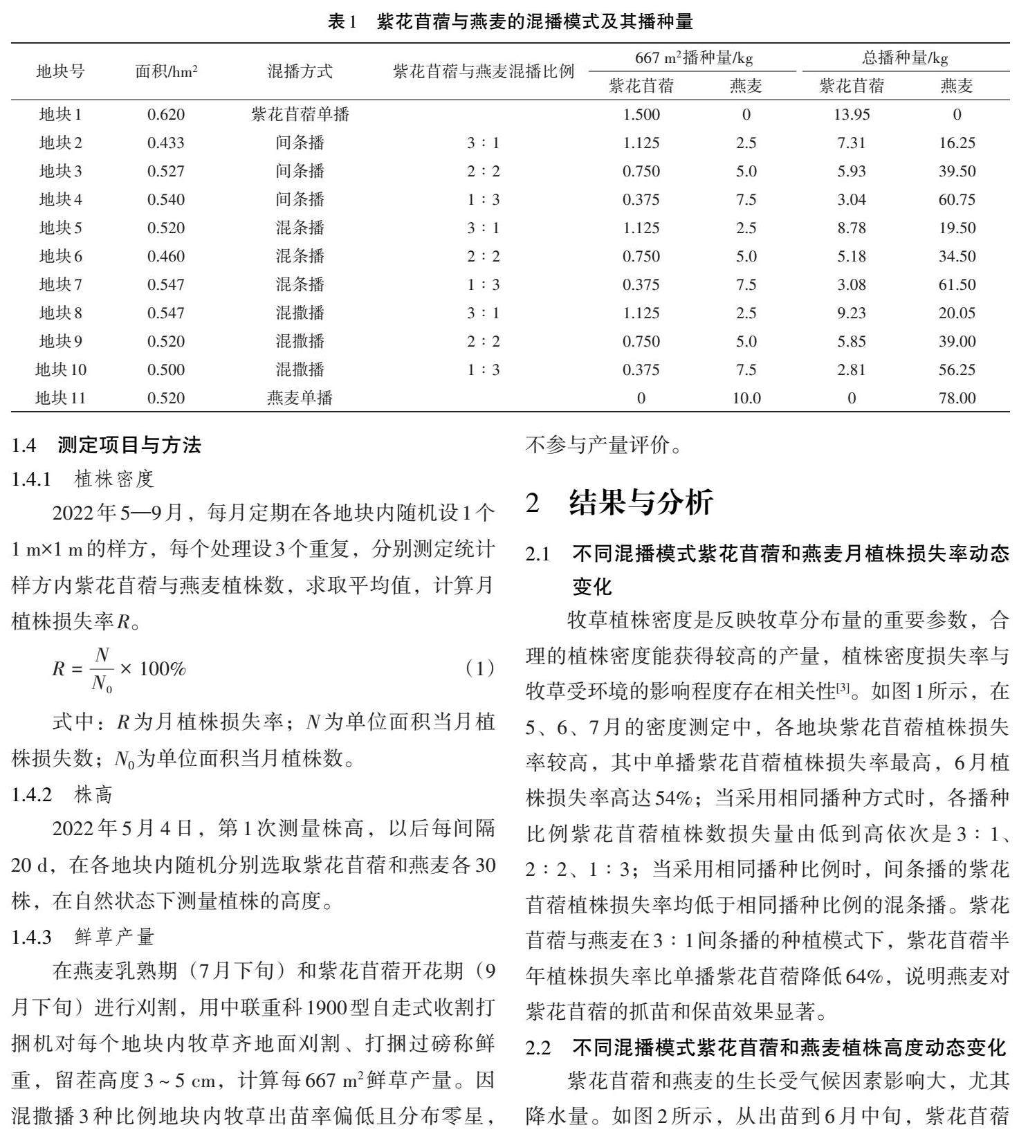 白银市种田乡紫花苜蓿与燕麦混播模式效果初探