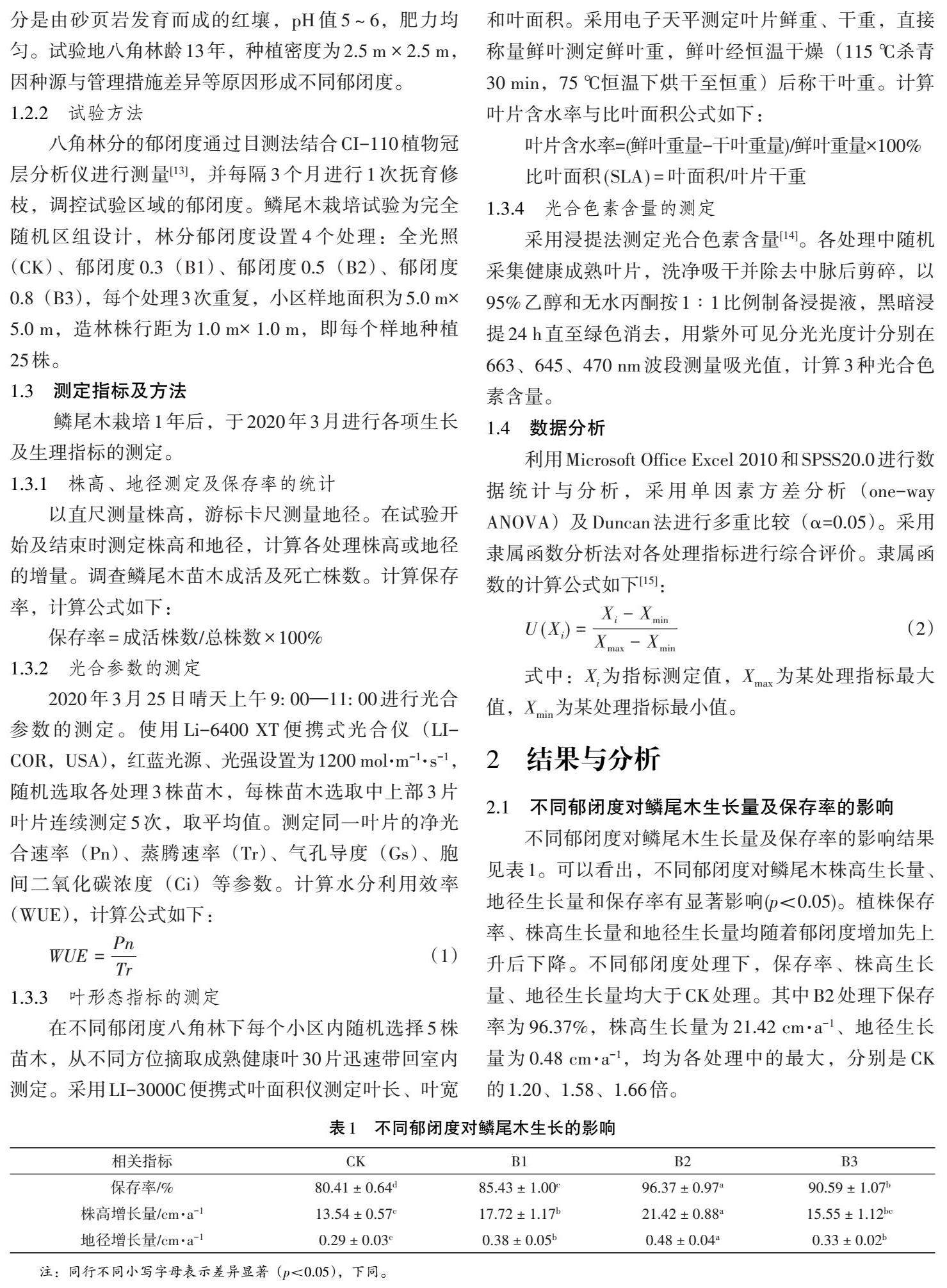 八角林不同郁闭度对鳞尾木生长发育及光合特性的影响