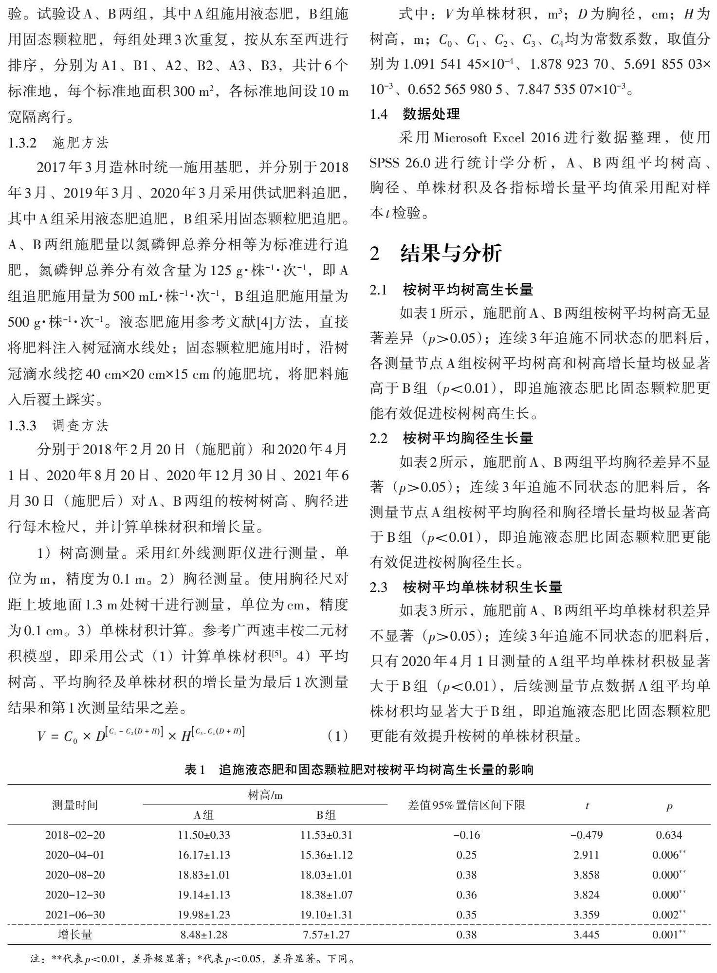 追施液态肥和固态颗粒肥对广西国有七坡林场桉树生长的影响