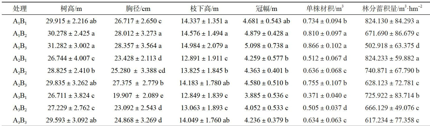 密度和间伐强度对柳州市按树大径材培育效果的影响