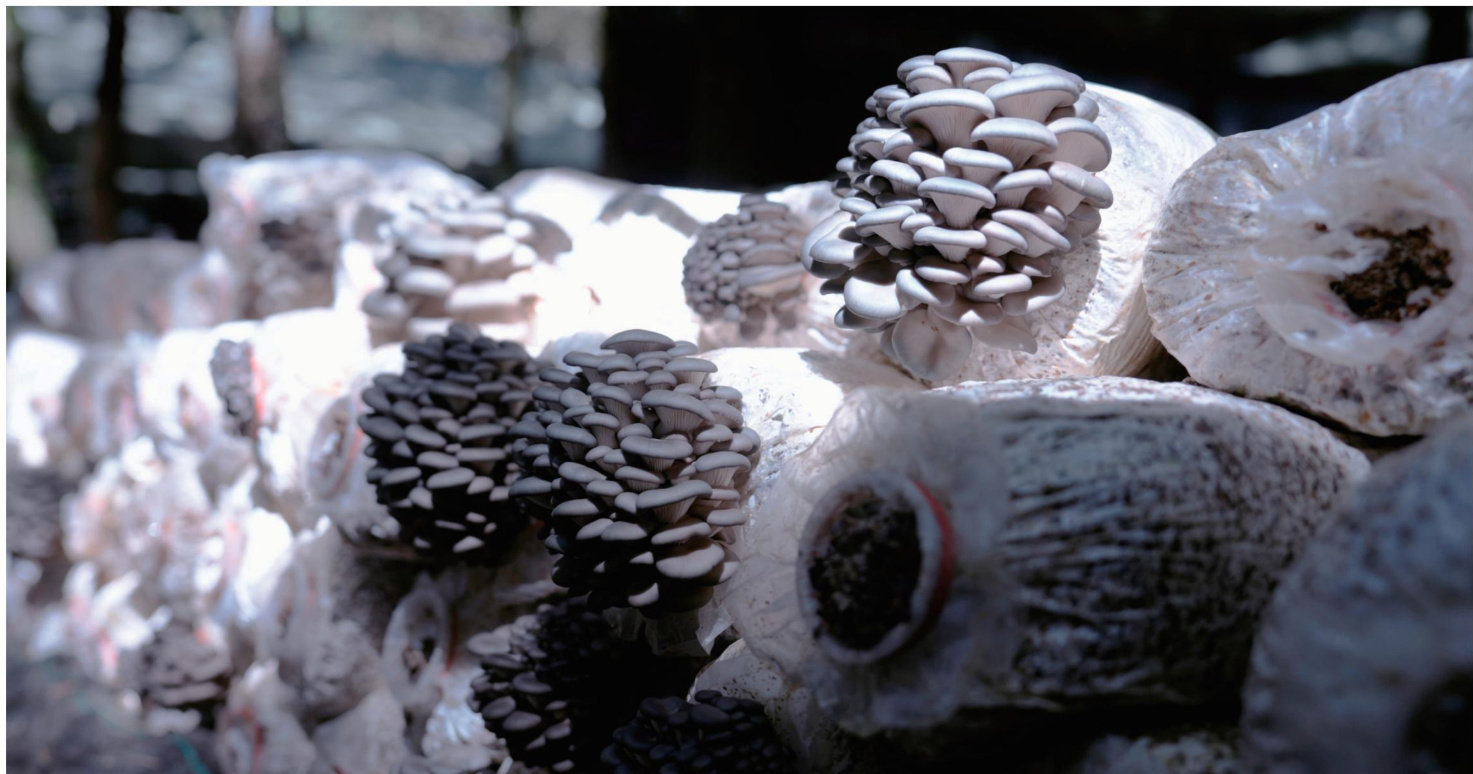 贵州省毕节市雪山镇成熟的平菇沐浴着阳光