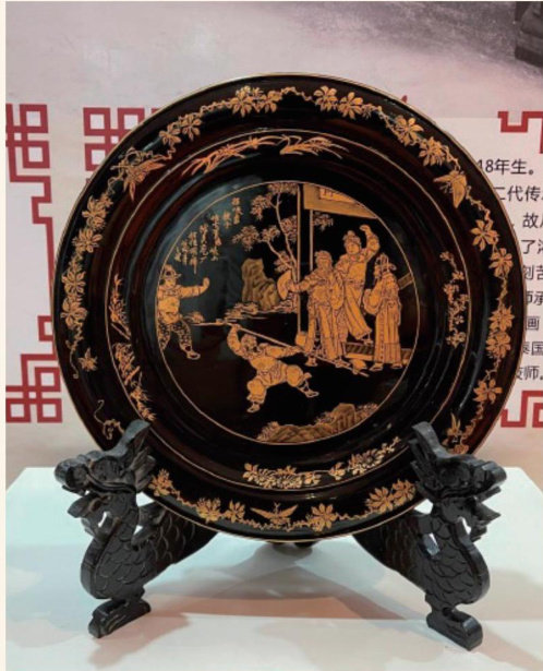 广东潮汕金漆画的历史源远流长,起源于明初,至清乾隆年间已形成独特且完整的民间金漆画体系,在我国髹饰工艺中独树一帜。陇美金漆画是潮汕金漆画的重要一脉,为陇美村人胡氏一派艺人所创,因颜料采用黄金和青金,画面层次丰富多彩,自成一格,且形成了一定规模,故被称为陇美金漆画。