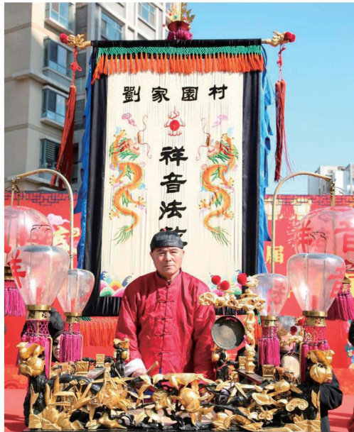 法鼓是天津民间花会的重要项目,归属佛教音乐。据传,最早的一个法鼓团体即是大觉庵金音法鼓会。法鼓会乐器由鼓、钣、饶、铬子、铛子组成,以鼓为主,居于乐队中央;钣左钣右,各有七八人;铬子、铛子各二人,都在鼓后。在表演时,各种手持乐器均需“耍”,并要轮流表演。开始演奏称为“开”,先击鼓数声,继之头钣连敲四声,各种乐器按谱齐奏。(剩余698字)