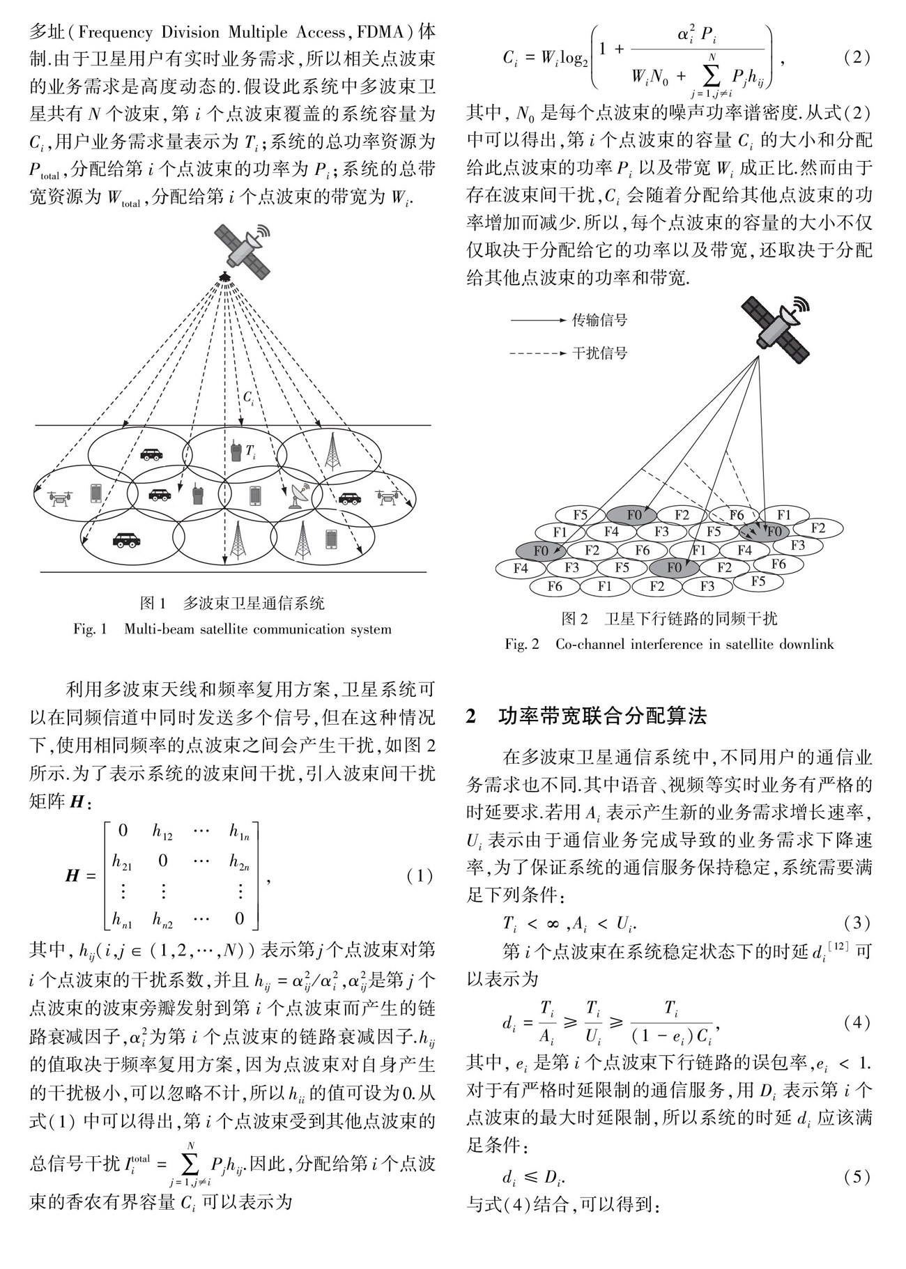 多波束卫星通信系统波束干扰下的资源分配策略研究
