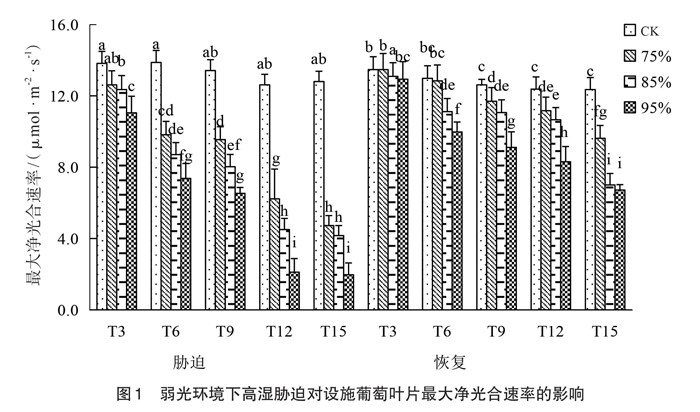 弱光环境下高湿胁迫对设施葡萄叶片生理特性的影响及评价