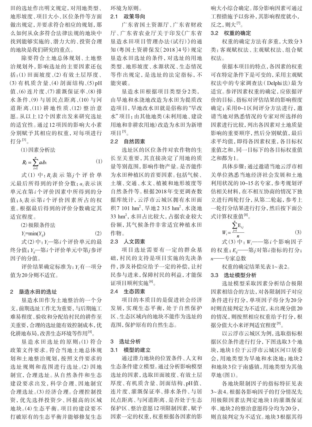 关键词 垦造水田;选址;因素分析;土地整治