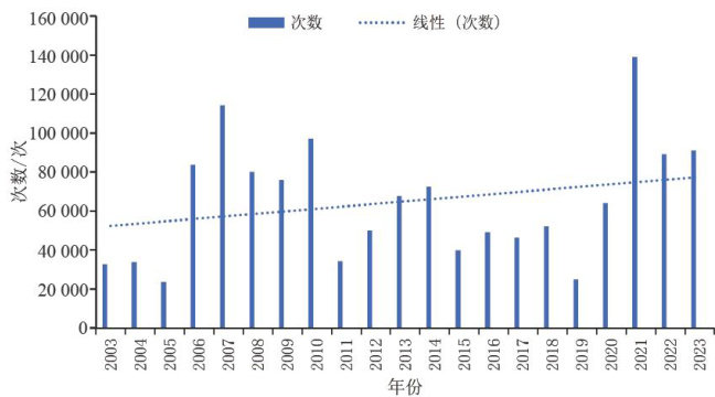 2003一2023年九江市雷电的时空分布特征及风险评估分析