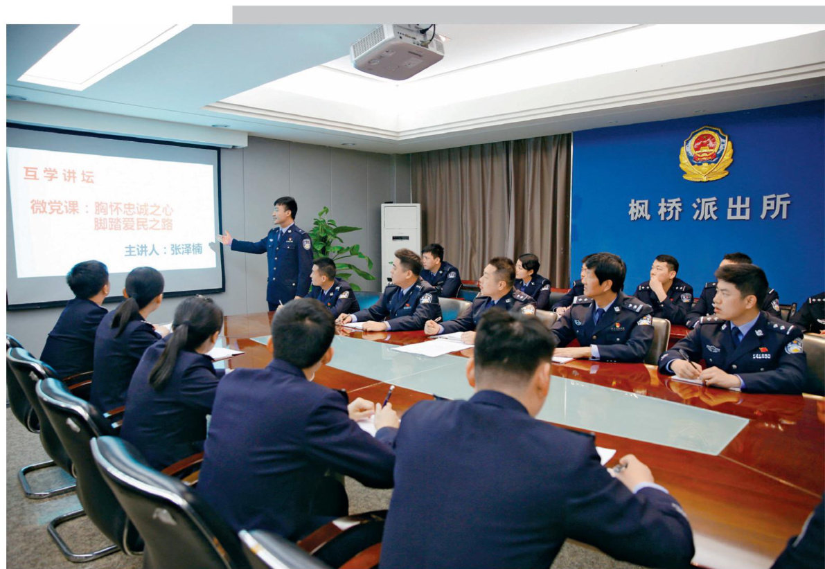 在枫桥派出所党支部的微党课上,副所长张泽楠分享工作中的爱民为民心得