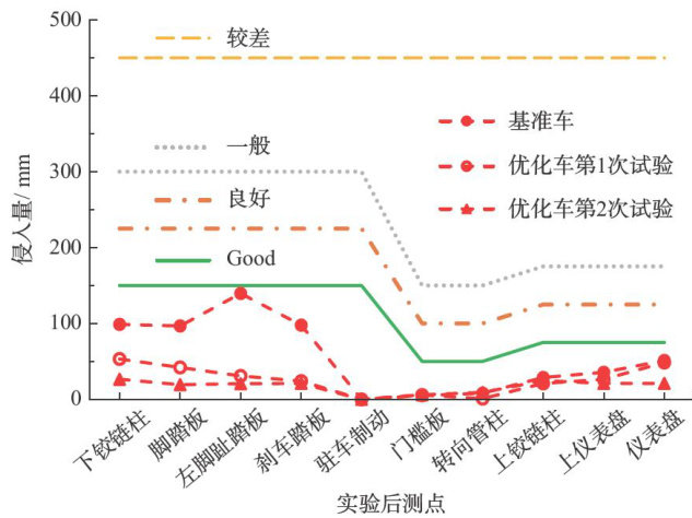 Abstract:To achieve lateral displacement control of pure electric vehicle models during the safety development process for smallofset frontalcollsions,a combined simulationand experimental approach wareemployedto identifythe keystructuralfactors influencing lateral displacement,andto investigate the designmethodology and evaluation metrics for front compartment configurations associated with such displacement behavior.Takinga certain type of pure electric architecture sedan of the company as an example,an optimization plan was designed.The results indicate that the proposed scheme increases the lateral displacement of the vehicle during collision disengagement by 236mm ,reduces the maximum structural intrusion by 119mm in the structural rating assessment, achieves controlled vehicle sideslip.And the Grating ismet,validating theeffectivenessof theevaluation index,and providingavaluable reference for the development of small-overlap safety strategies in new energy vehicle programs.