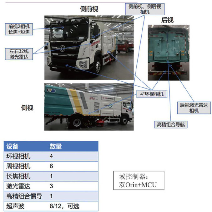 【Abstract】To realize the unmanned driving of sweeping and washing vehicles,this paper takes the 18t pure electric sweeping and washing vehicle as the research objectand elaborates on its umanned driving system technology. The sweeping and washing vehicle adopts a pure lectric wire-controled chassis, which is controlled based on CAN bus distributed technology.It isalsoquipped with domaincontrollers,push streamcontrolers,lidar,ultrasonicradar,highdefinitioncameras and other equipment,enabling the unmanned driving function.In addition,sanitation operation tasks canbe asigned to the sweeping and washing vehicles and operation routes canbe planned through the cloud control platform,which greatly improves theoperation eficiency and driving safety of thesweeping and washing vehicles.