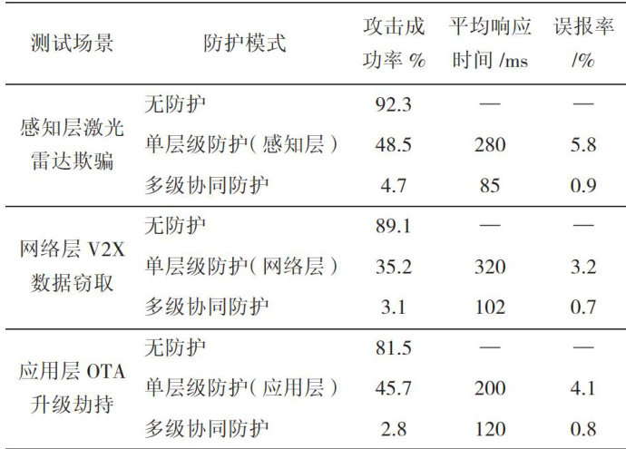 【Abstract】With the rapid development of intelligent asisted driving, intelligent connected vehicles,while enhancing the level of driving inteligence,are increasingly attaching importance to safety protection design.This articlefirstprovidesabriefoverviewof intellgentconnectedvehicles,thenanalyzesthesecuritythreats theyface from three dimensions:the perception layer,the network layer,andthe applicationservice layer.Subsequently,itproposes corrsponding multi-level security protection system design strategies and verifies the security protection effect of this system through actual experiments, with the aim of providing references for industry colleagues.