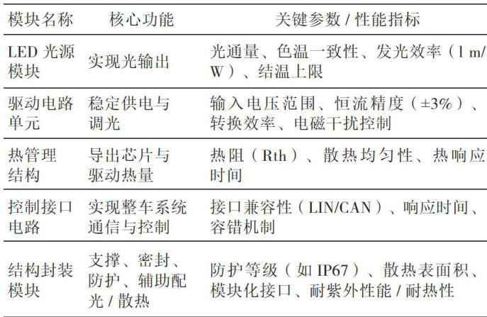 【Abstract】This paper focuses on the engineering implementation of automotive LED lighting systems,centering on two mainaspects: thepractical designofdrivercircuitsandthesystematicpathways for improving opticaleficiency.It defines reproducibleboundaryconditions for vehicle-gradeinput stages,reverse polarity protection,and filtering networks on test benches.Forconstant currentand fedback loops,acomplete processis proposed,including Kelvinrouting for sampling resistors,iterative compensation network tuning,andNVM-based factory calibration.Regarding integrated EMC anddiagnostic strategies,the studyoutlinesarectification sequence involving PCB layer partitioning,single-point grounding,andsource-levelsuppression.Opticaleficiencyenhancementisaddresseddirectlybytargeting threeprmary loss domains:optical pathattenuation,electro-thermal disipation,and spectral/colorimetricinstability.Theapproach details specificengineering actionssuchas material selection,assemblycleanlinesscontrol,DOE-basedopticalfinetuning,compresionrate verificationofthermal interfaces,durabilityvalidationofheat pipebrackets,and spectralcutoff coating inspection.