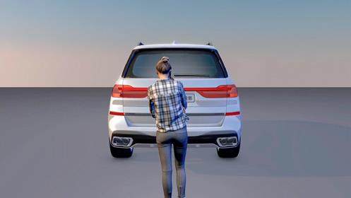 该产品由一数科技原创,取代不灵敏的传统一脚踢,融合AR和光学TOF传感器特点,从用户现有痛点出发。基本场景是当用户靠近车辆时,识别有开门或打开尾门意图,然后自动投射激光图案在地面,用户脚踩打开,不用动手,进入车内或放置行李后,再踩踏一次,车门就自动关闭。