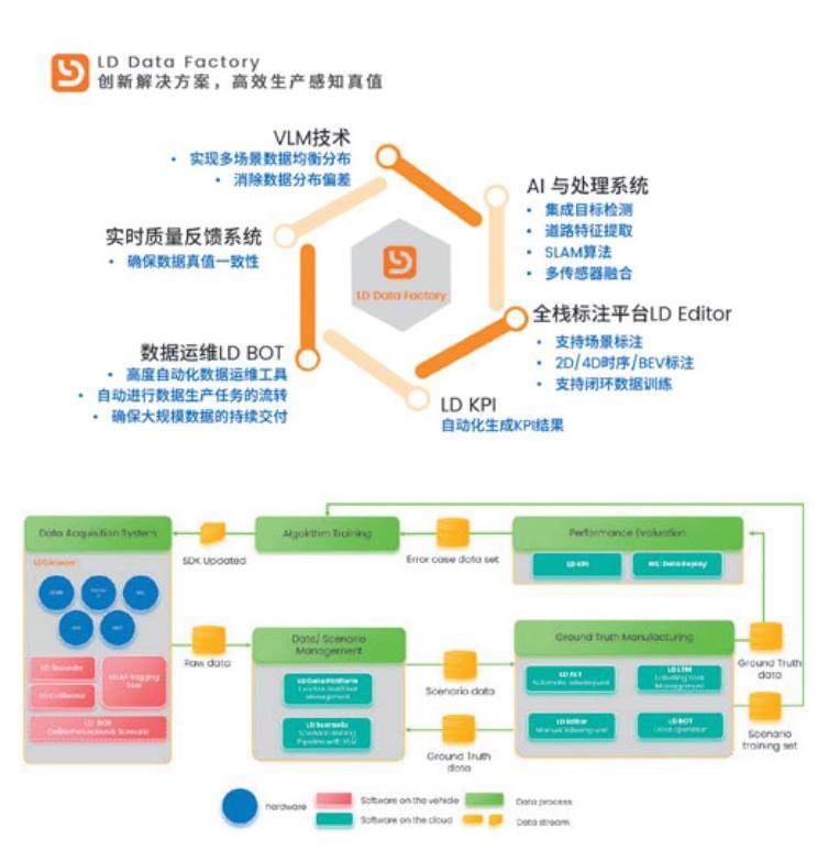 LD Data Factory 以“4D连续帧真值”为核心,首创“数据采集—标注—质检—评价”闭环,具备AI自动标注、遮挡下目标追踪、跨帧一致性校验、感知性能KPI分析等核心能力。该系统基于多模态融合与时序建模原理,显著提升数据构建效率与质量稳定性,支持SaaS与私有化部署,满足不同客户数据安全与交付需求。(剩余39字)
