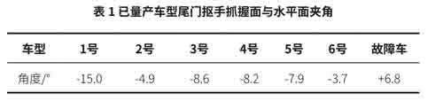 关键词:尾门抠手;人机工程;抓握面;开口尺寸;关门力
