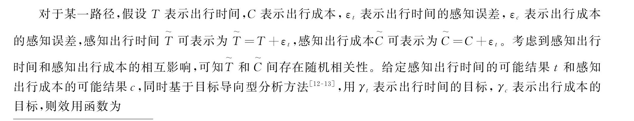 对于某一路径,假设 T表示出行时间,C 表示出行成本,εt 表示出行时间的感知误差,εc 表示出行成本