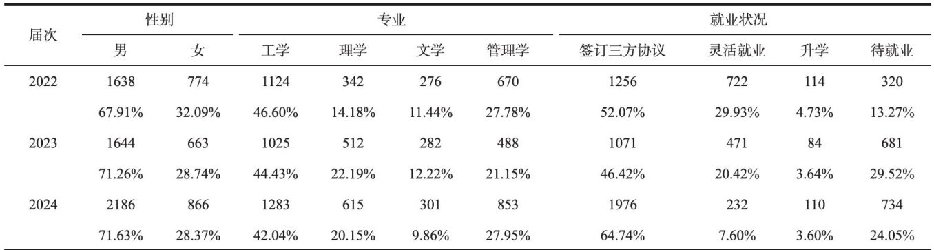 Abstract:Thematchingand couplingof the employabilityoffour-year program university graduates with the demandsofemployersisakeyfactorinachieving high-qualityemploymentforstudents.Byusing thedistancecalculation method,the study analyzed the differences betweentheemployabilityofuniversity graduates and the demandof employers.Theresultsshow thatthegraduates need toposssstheability toacquire knowledge,theorganizational and reasoning skilsandhigh qualities tomeethedemandsofemployers;and thatthereisasignificant gap between the graduatesandthedemandsofemployers intermsofapplicationofknowledge,problem-solvingability,teamwork spirit, senseofresponsibilityandadaptability.Therefore,tonarow thegapbetweenthedemandsofthegraduatesandthoseof employersandfacilitate thesmooth employmentof graduates,effrtsshouldbemadefromthreeaspects:enhancing the awarenessofgraduatesregardingthesignificanceoftheiremployability,facilitating thecooperationbetweenuniversities andemployerstoincreasepracticalopportunities,andcreatingacollaborativetrainingmodelintegratingthegovernment, universities and employers.