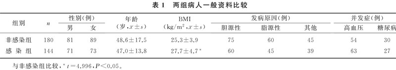[摘要] 目的 探讨中性粒细胞与淋巴细胞比值(NLR)、降钙素原(PCT)与改良CT严重指数评分(MCTSI)联用对重症急性胰腺炎(SAP)继发感染性胰腺坏死(IPN)的早期预测价值。方法 分析324例SAP病人的临床资料,根据是否发生IPN,分为感染组(144例)和非感染组(180例),比较两组NLR、PCT及MCTSI差异。(剩余8980字)