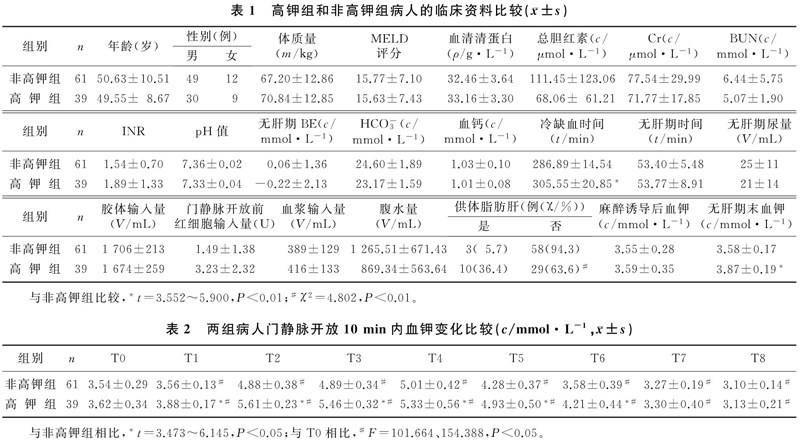 肝移植术门静脉开放10min内血钾变化及危险因素