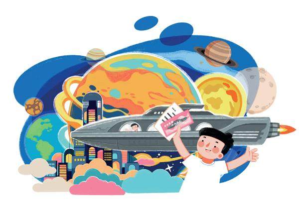 “小明,我已为你买好了下星期三上午八点的飞船票,你到宇宙港第九号太空飞船站上船。我会在太空一三七区接你。预祝你旅途愉快。”