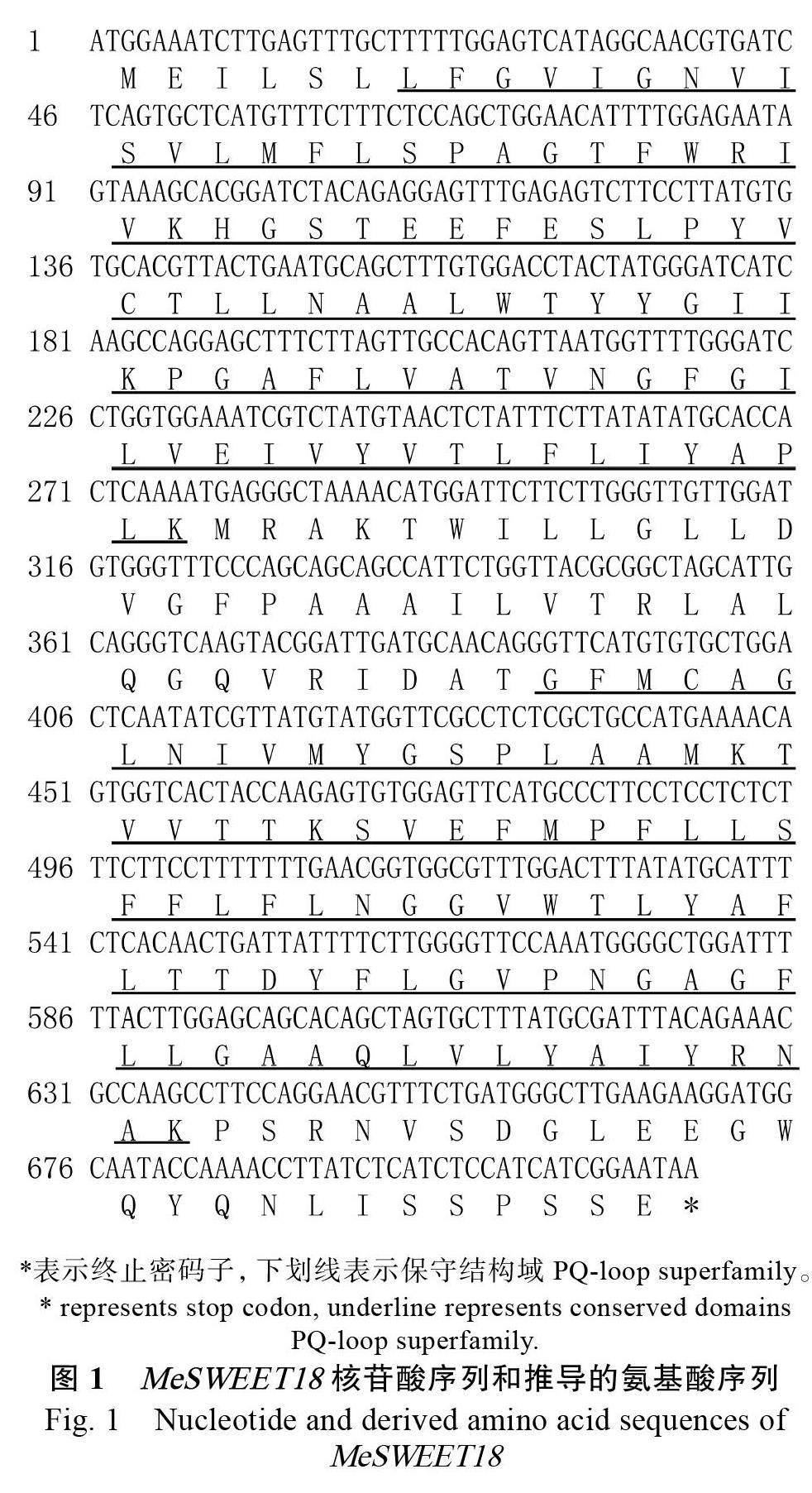 木薯糖转运蛋白MeSWEET18的克隆与功能分析