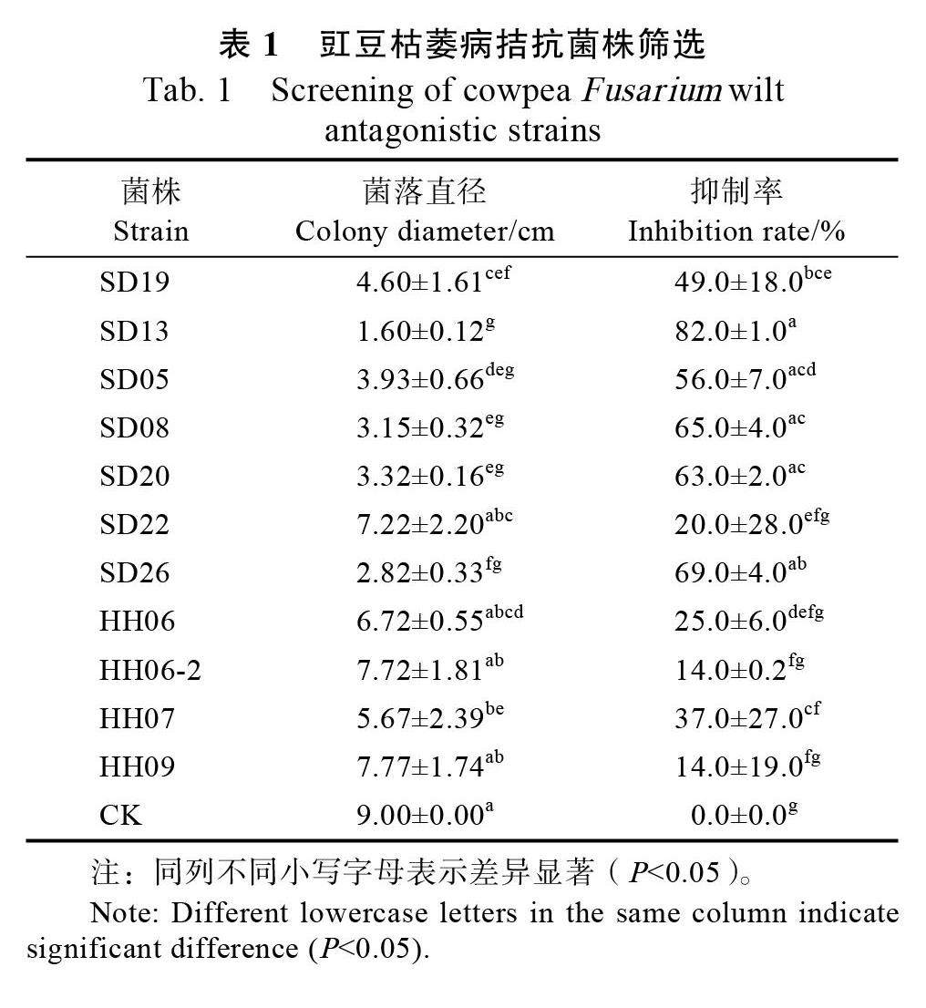 豇豆枯萎病生防细菌的筛选鉴定及抗病机理初探