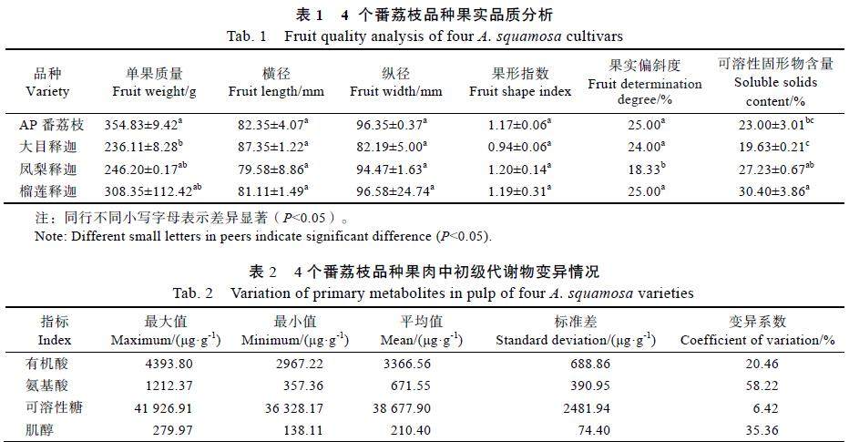 云南干热河谷4个番荔枝品种果实品质和初级代谢物分析