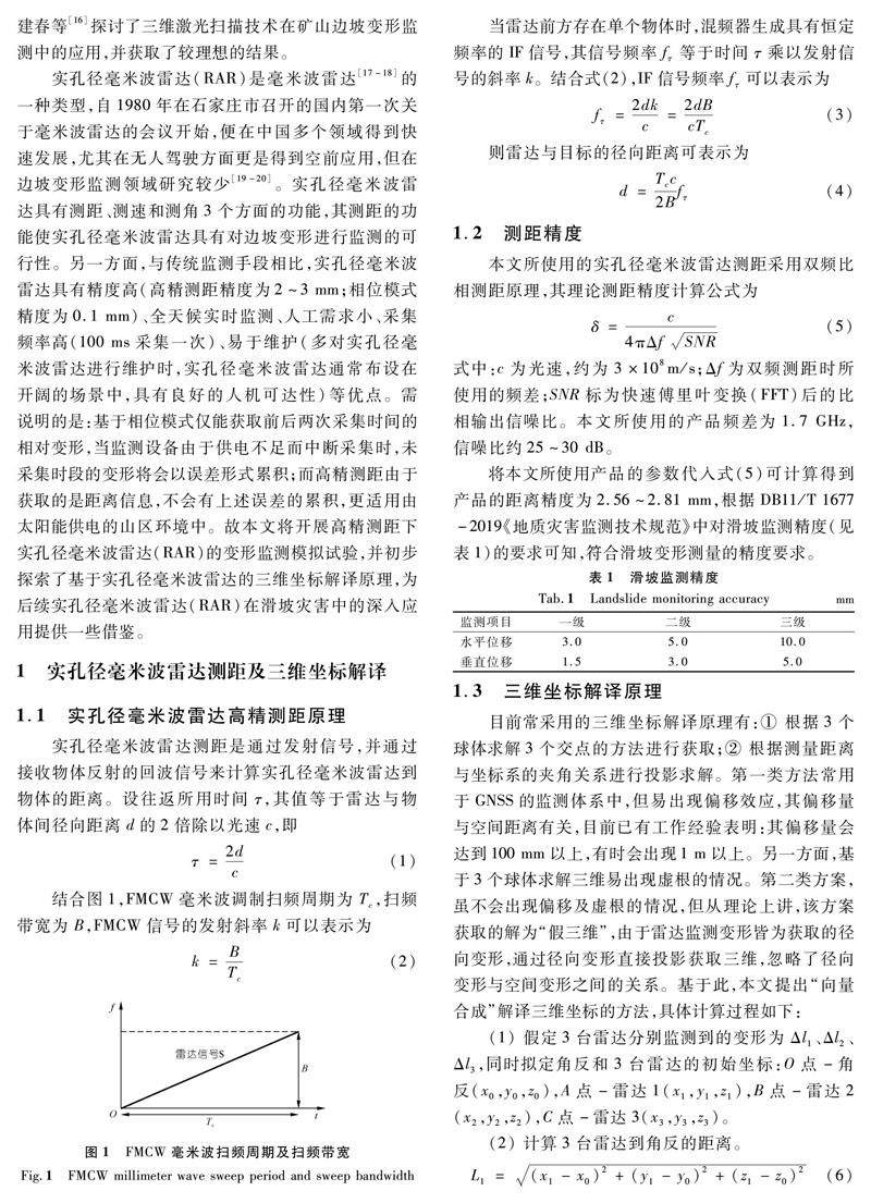 摘要:变形监测是了解滑坡演化过程的重要手段,为探究实孔径毫米波雷达(RAR)的边坡变形监测性能,采用摄影滑轨作为变形模拟装置,开展实孔径毫米波雷达的变形监测模拟试验,并结合工程案例分析。研究表明:① 实孔径毫米波雷达具备变形监测的能力,当摄影滑轨返回至原点时,实孔径毫米波雷达的误差仅为-4.68 mm 和6.39 mm,整体能准确反映出摄影滑轨的变形特征;② 单台实孔径毫米波雷达能监测到水平覆盖范围在200 m以内的角反射体,且能得到较好的变形信息,可满足中型滑坡体的监测需求;③ 整体验证了三维坐标解译原理的可行性,在变形量达到970 mm时,其解译的空间位移误差为9 mm,误差比小于1%,方位角的解译与实际滑轨运动方向趋于一致。(剩余9717字)