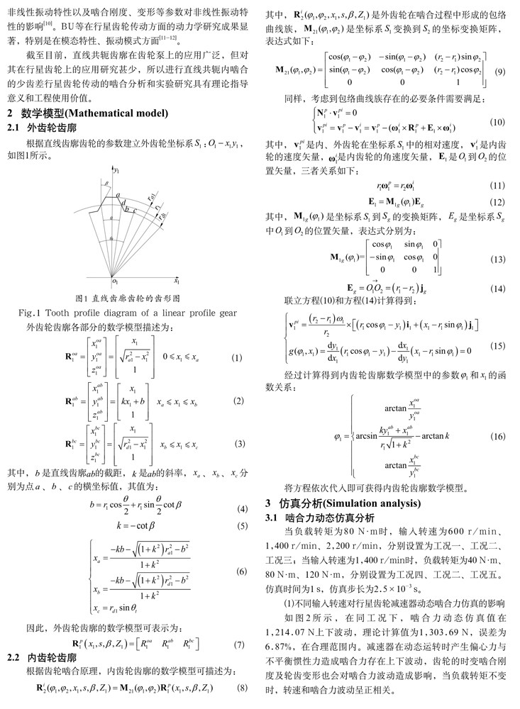直线共轭少齿差行星齿轮传动仿真及实验研究