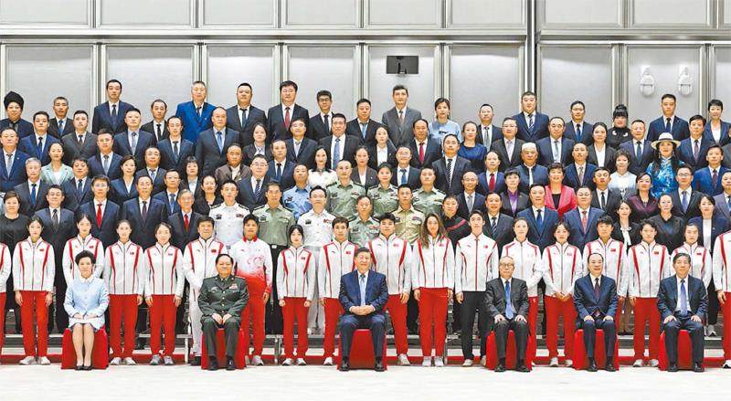 11月9日下午,中共中央总书记、国家主席、中央军委主席习近平在广州亲切接见全国群众体育先进单位、先进个人代表和全国体育系统先进集体、先进个人代表,并同大家合影留念。