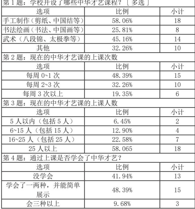 中华才艺课程现状调查