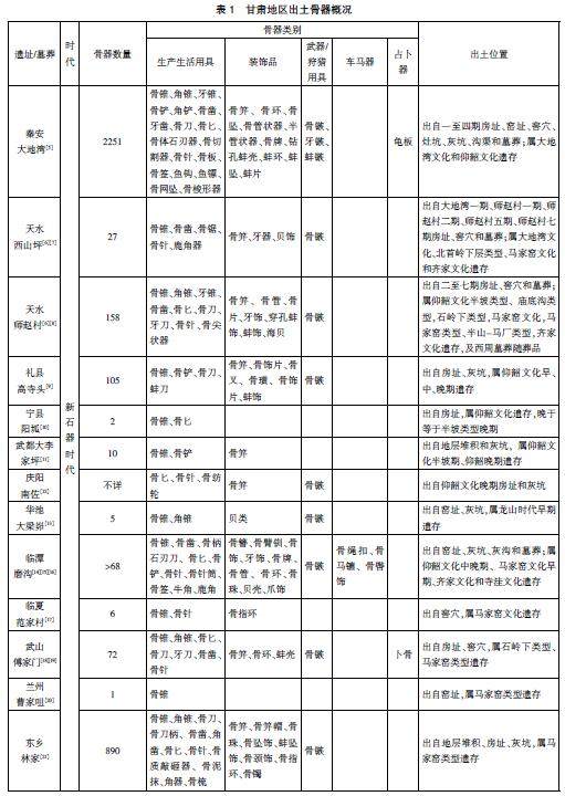 甘肃地区出土骨器及相关问题研究