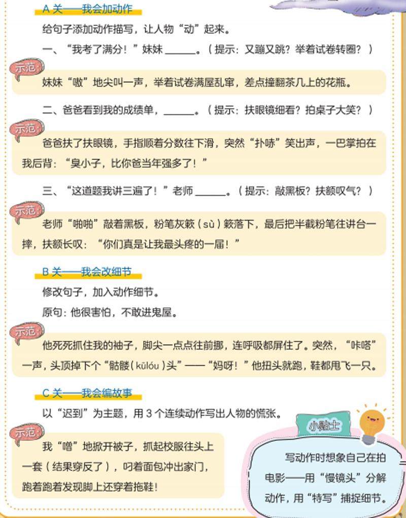 人物的动作往往是情感的“放大镜”,它能让人物形象鲜活起来。生动的动作描写,能让读者“看”到人物的喜怒哀乐!接下来,让我们来学习如何写好人物动作。