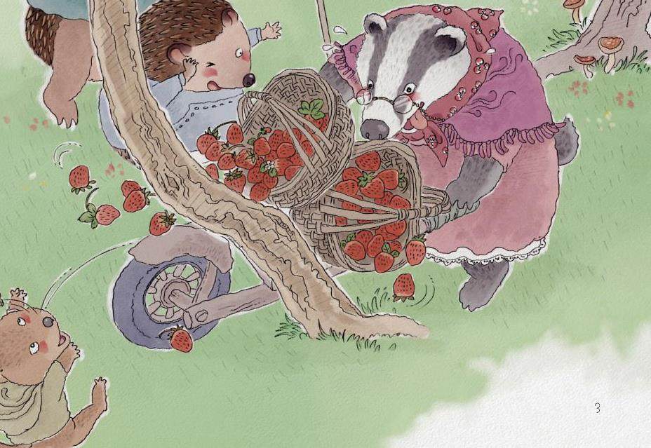 当她下坡时,刚巧刺猬爷爷领着小刺猬从边上跑出来,急得她赶紧拽住车把,可惜晚了一步——车子一歪,撞在一棵大树上,草莓纷纷滚落到地上。(剩余796字)