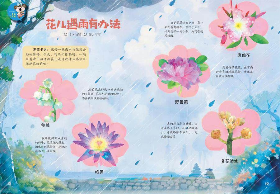 知识卡片:花粉一被雨水打湿就会影响传播。但是,花儿们很聪明。(剩余26字)
