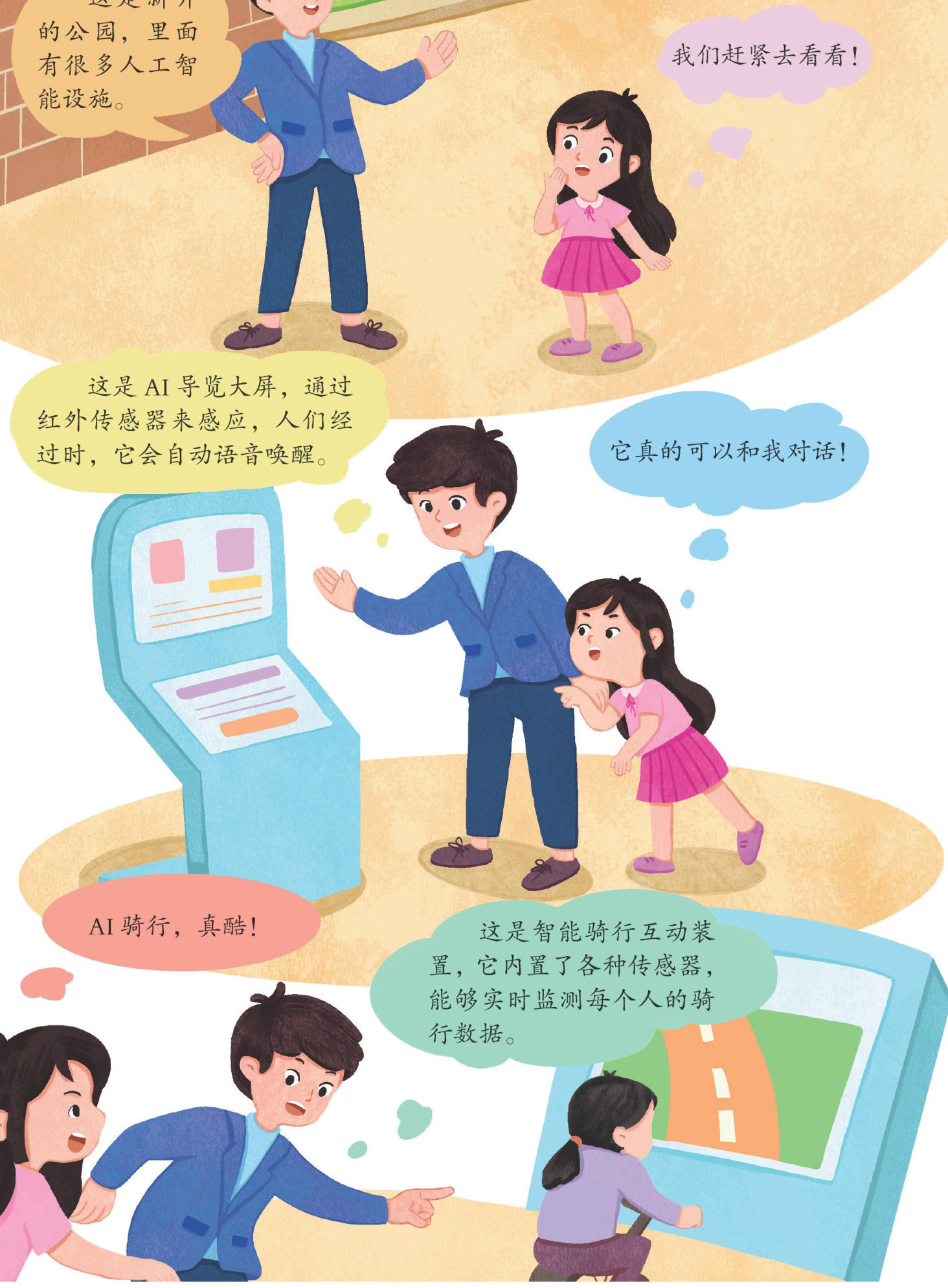 知识卡片:智慧公园致力于用科技手段让人们找到自己喜欢的运动方式。在这里,你可以在AI管家的帮助下获得景区内的游览路线、景观介绍等内容,在游览的途中遇见众多高科技设备。(剩余32字)
