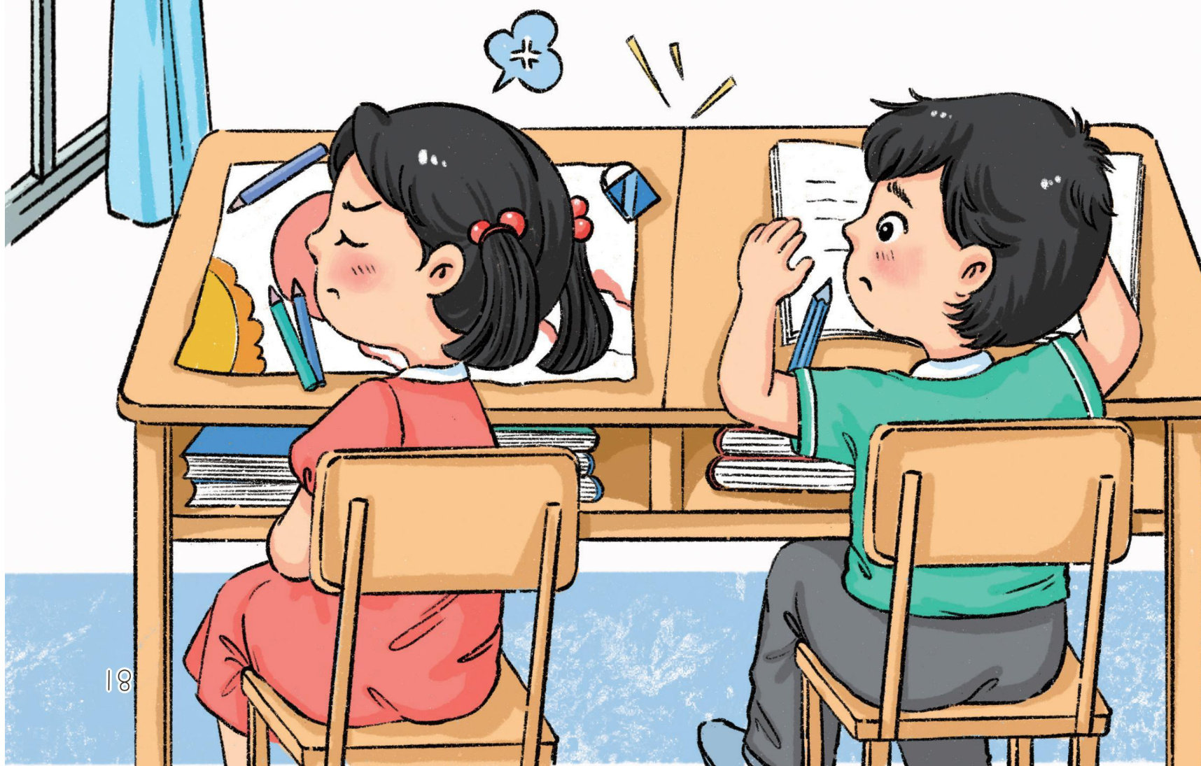 美美又气又恼,“唰”地在两人共用的课桌上重重地画了一条线,气呼呼地噻道:“这是我们的分界线,你要是再敢越过它,别怪我不客气!”
