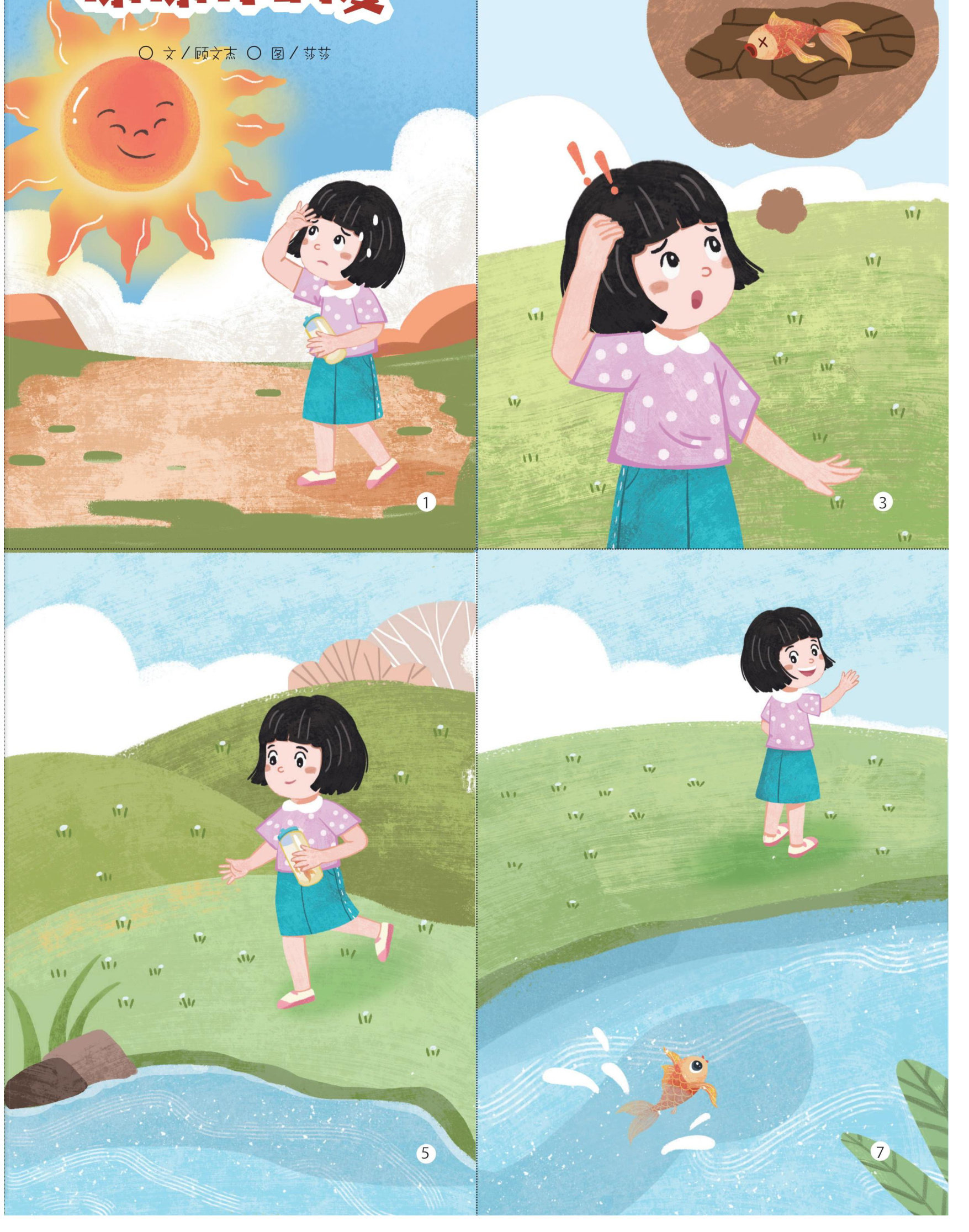 天气那么热,小鱼会不会被晒干呀?小女孩心想。