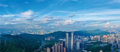 2025年6月,穿过新崛起的深圳新地标——亚洲第一等高双子塔,深圳湾尽收眼前。薛云麾 摄